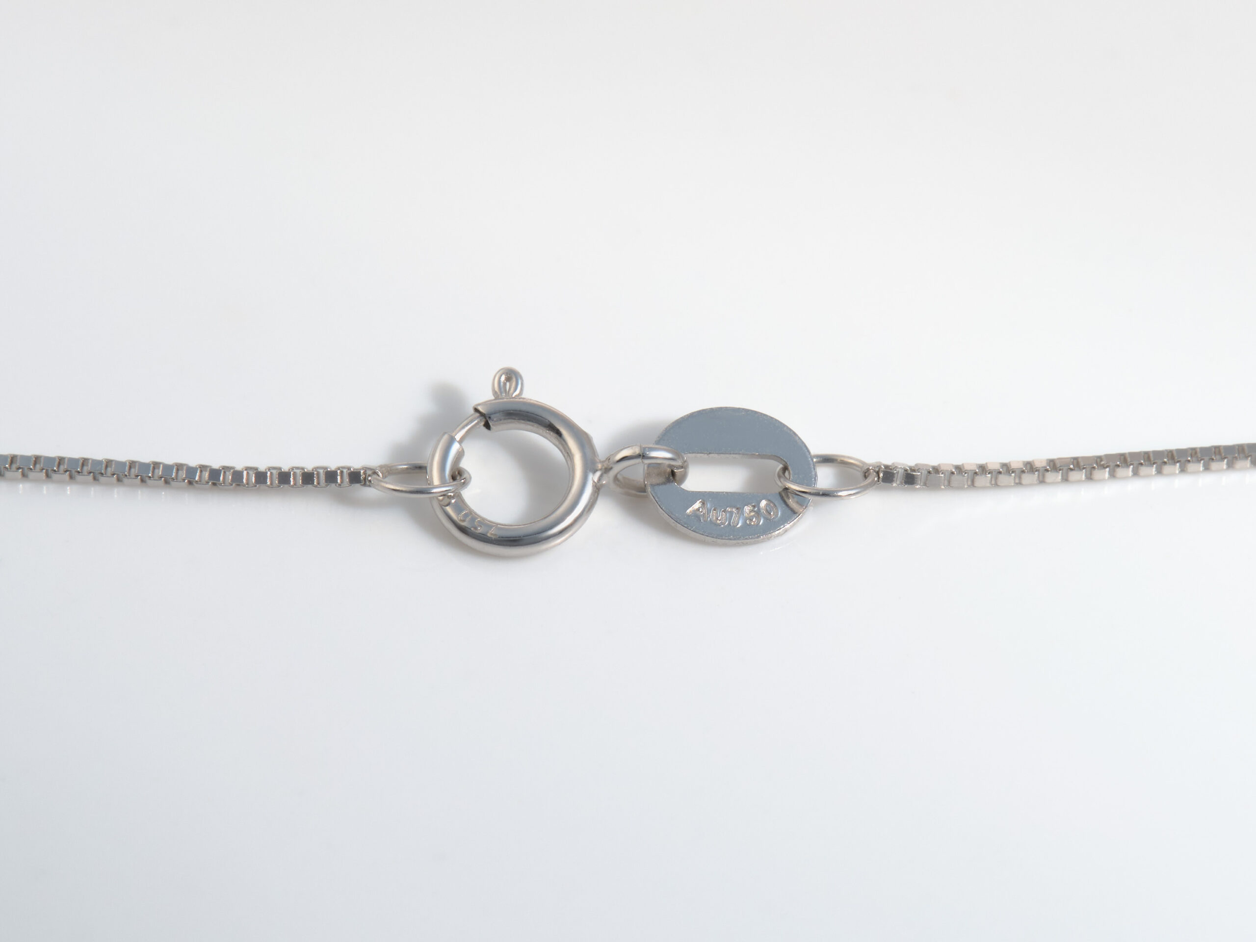 White South Sea pearl set on a white 18k solid gold pendant. The chain is not included. The pearl is a cultured pearl grown on a farm in the Banda Sea.