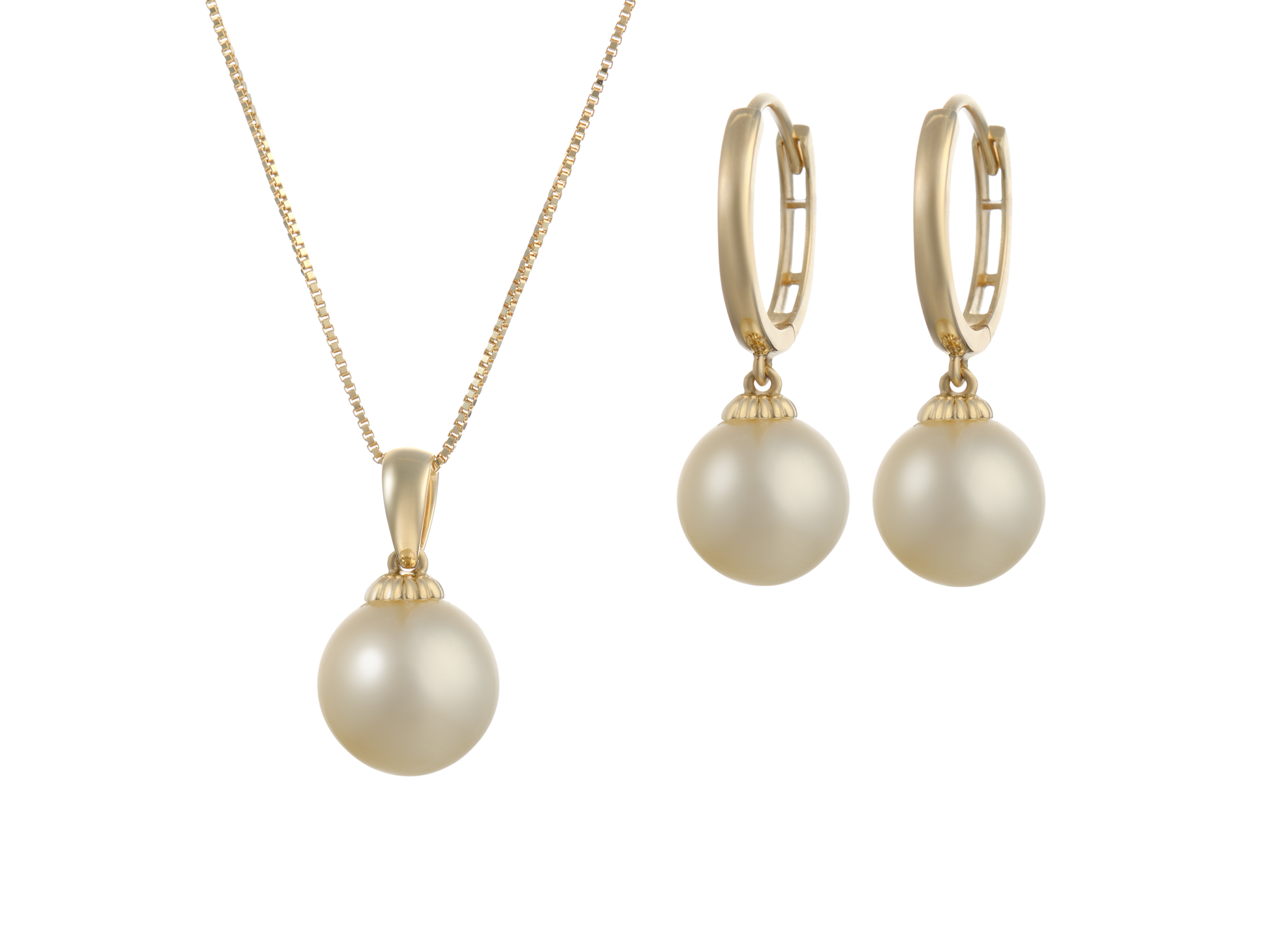 White South Sea Pearl Set of hoop earrings and a pendant: